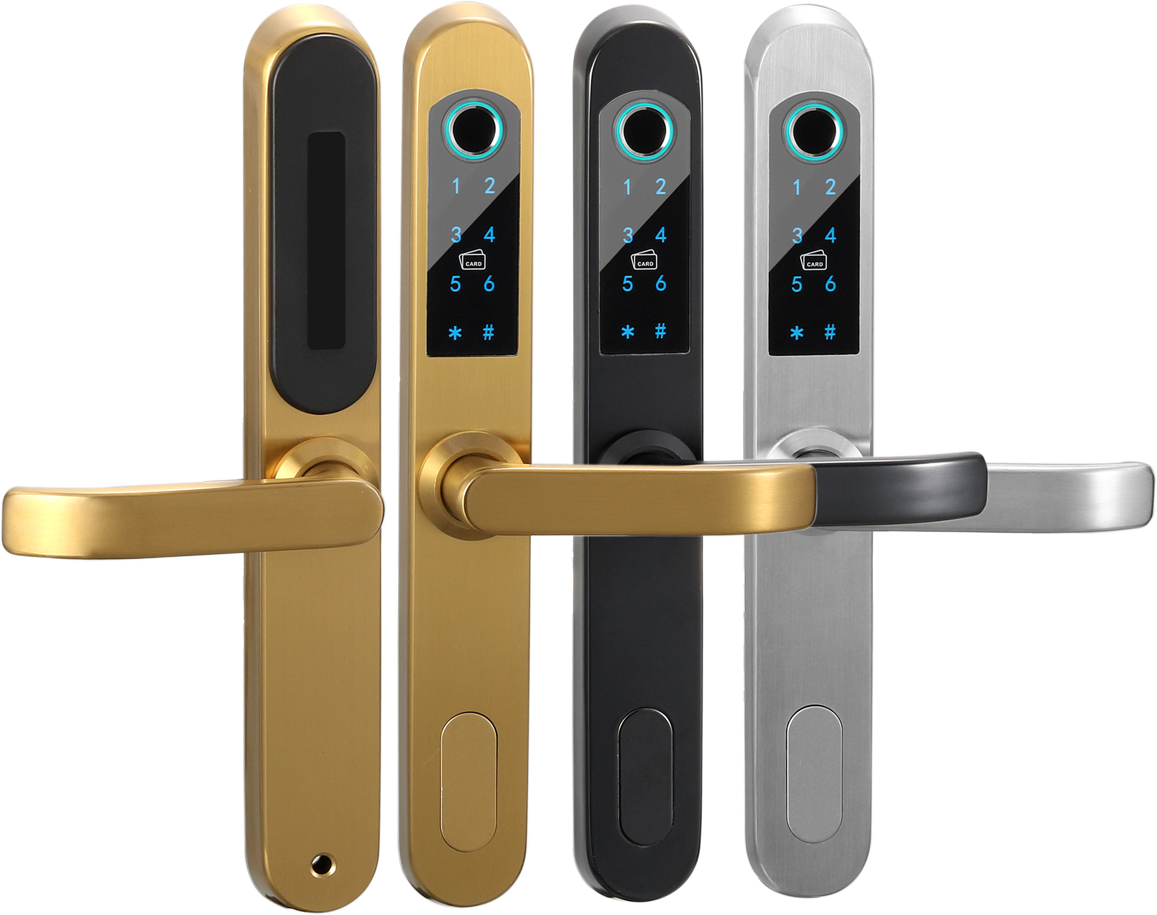 1. 開門方式:指紋,密碼,卡片,機械鑰匙開門多種方式,為您打造全方位的安全與便捷。